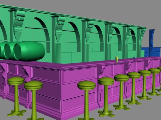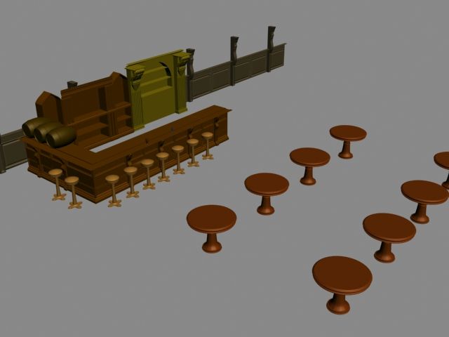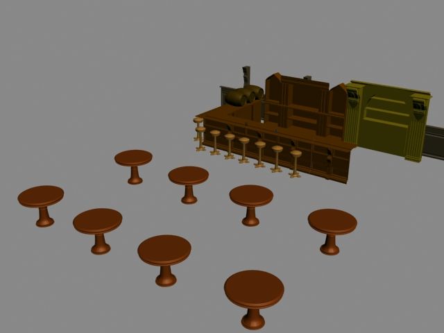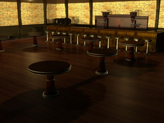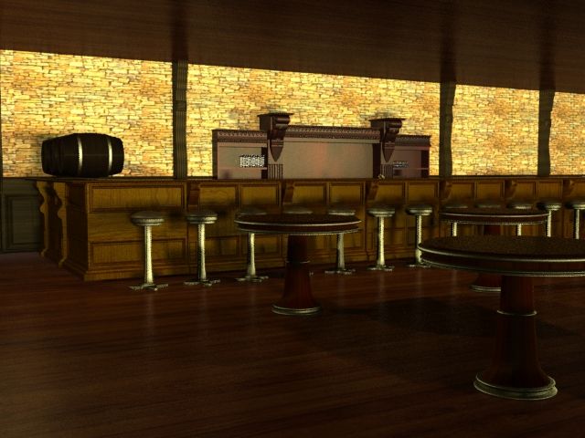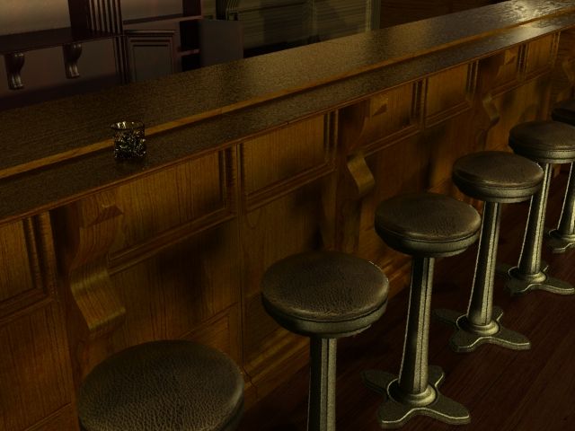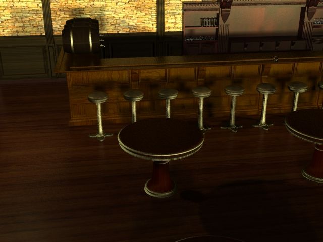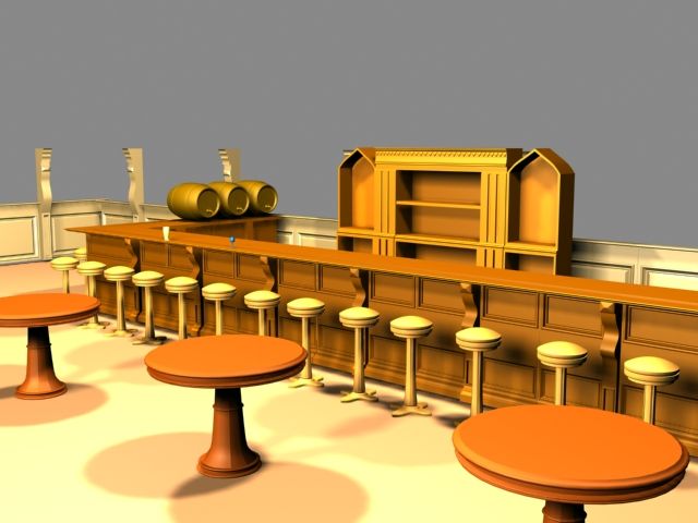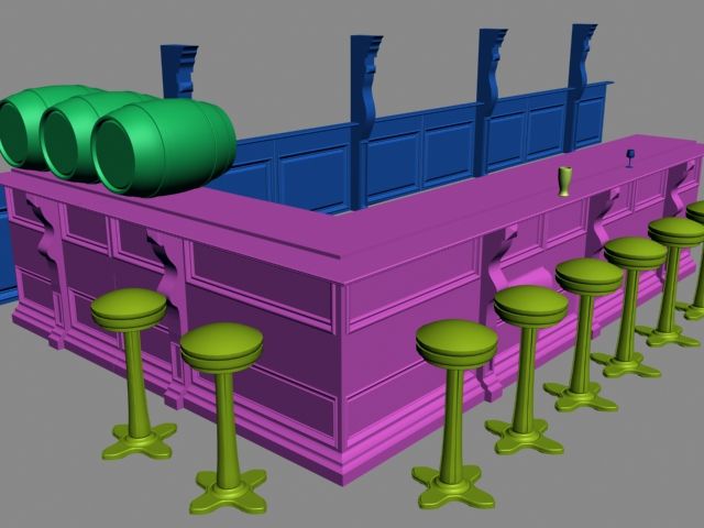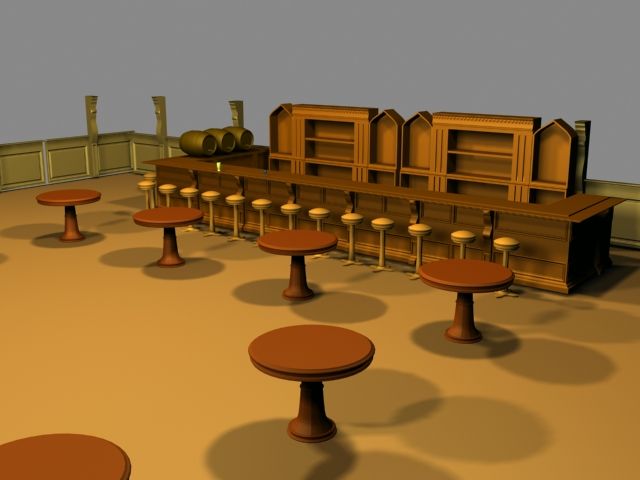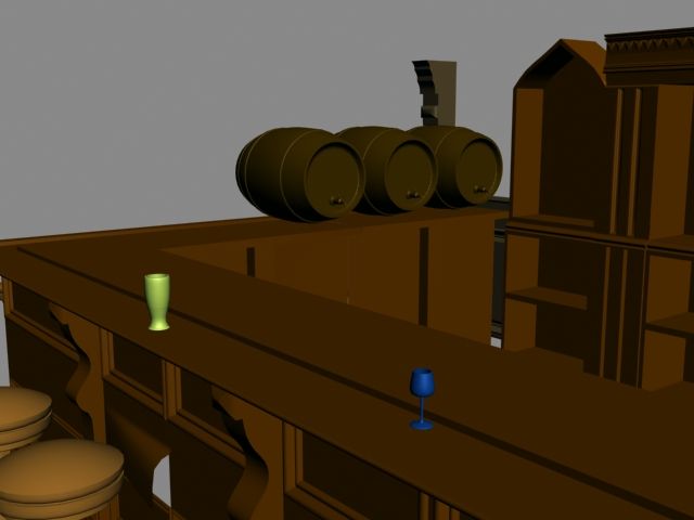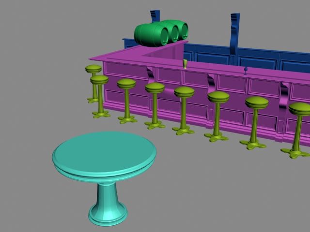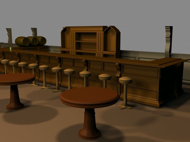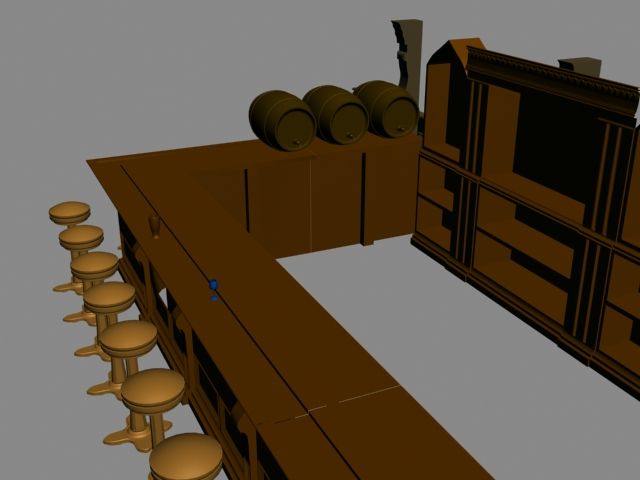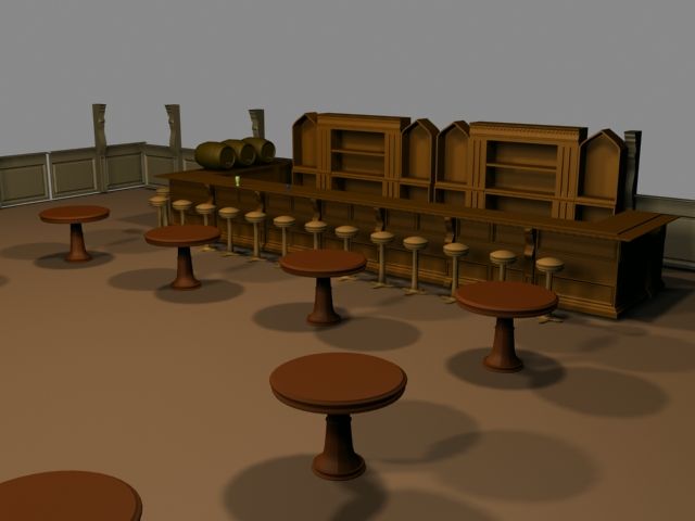 The scene itself I've gone through and tweaked here and there added in a few things and mainly since my last post went back and textured everything with the basic texture designs to make the bar feel more of a bar than a 3D scene. A few things I've done include: