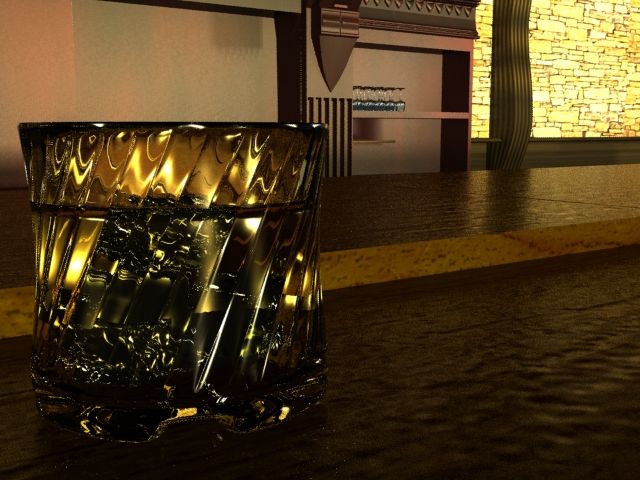 After the basic pieces were made I decided to actually start piecing things together to get a basic feel of the bar and how I wanted things set up. I added in a glass or two and started things off.